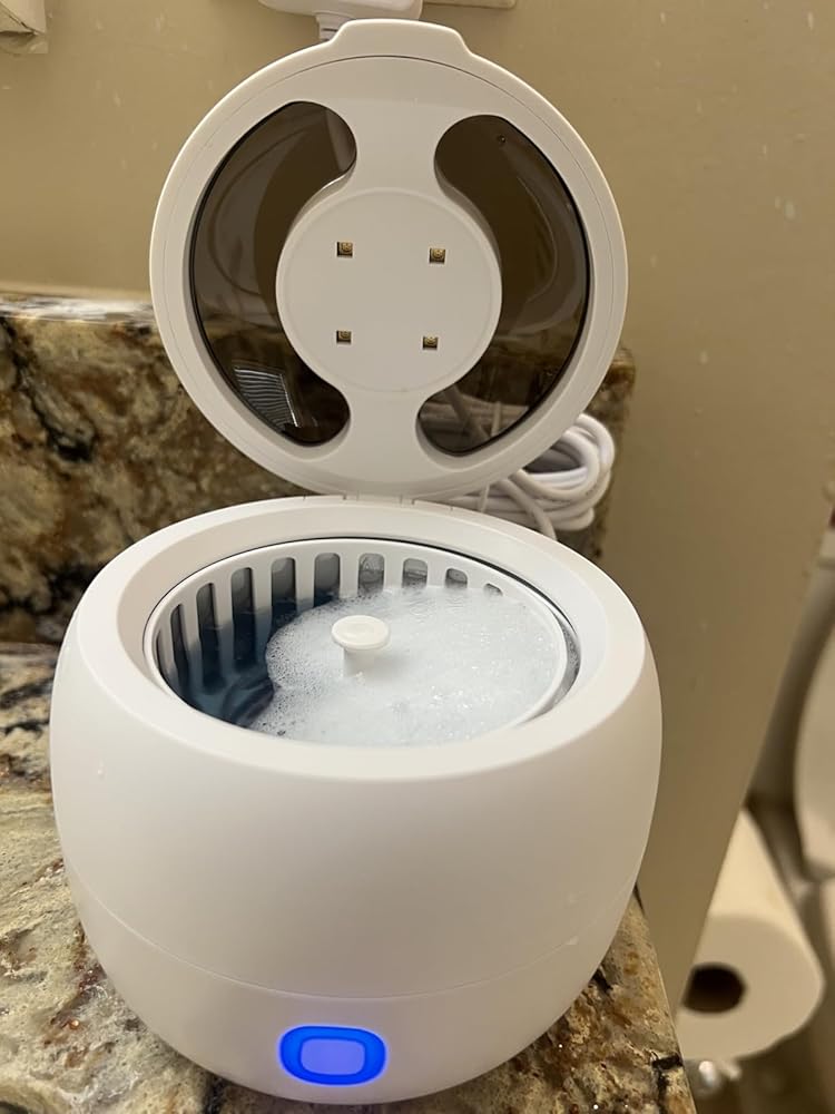 • 🔊 Powerful 45kHz Ultrasonic Cleaning – Deep & Safe-Utilizing high-frequency 45,000Hz sound waves, this retainer ultrasonic cleaner produces millions of microbubbles to lift away plaque, stains, and debris—even from tight grooves. It’s 3X more effective than manual brushing, yet completely safe for retainers, aligners, dentures, night guards, mouth guards, and even as a ultrasonic jewelry cleaner or earring cleaner for jewelry.